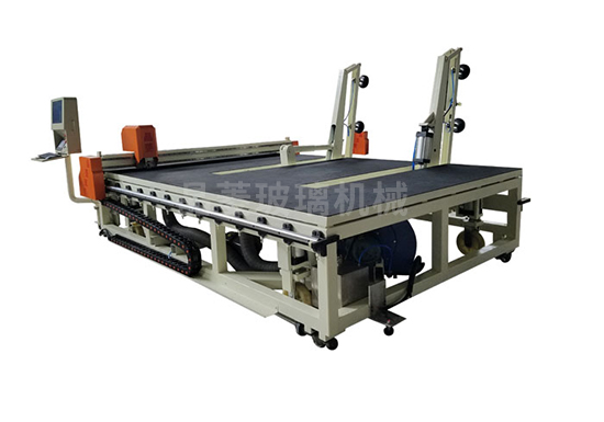 將玻璃(lí)放在(zài)指定位置,給出取(qǔ)片信號後,取片吸盤自動翻起並將玻璃吸附後放置在取片台傳送輥(gǔn)道上,自動將玻璃輸送到(dào)切(qiē)割機主機上。