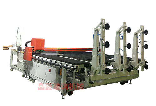 實現陶瓷板(bǎn)來料尺寸3200*1650*2-8mm的自動機械真空(kōng)上片(piàn)到上片台後進行切割,切割尺寸為按常規極限的來定,例(lì)240*100mm或1200*100mm,該切割線是由自動智能上片機+自動(dòng)切割(gē)機(特殊定製版)為一體+氣浮分片台三部分組成。將陶瓷板放在指定位置,給(gěi)出取片信號後,取片吸盤自動翻起並將陶(táo)瓷板吸附後放置在切(qiē)割台上,切(qiē)割機(jī)自動校正陶瓷(cí)板定位後進行切(qiē)割,切割完後切割機輸送帶頂起把陶瓷板輸送到(dào)掰片台上人(rén)工進行(háng)掰片